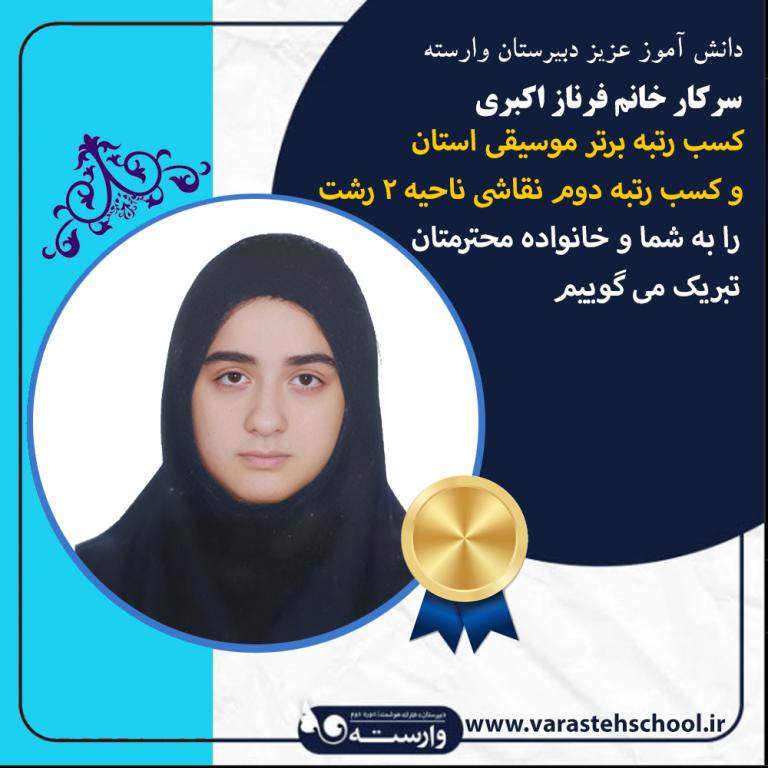فرناز اکبری: کسب رتبه برتر موسیقی استان – کسب رتبه دوم نقاشی ناحیه 2 رشت