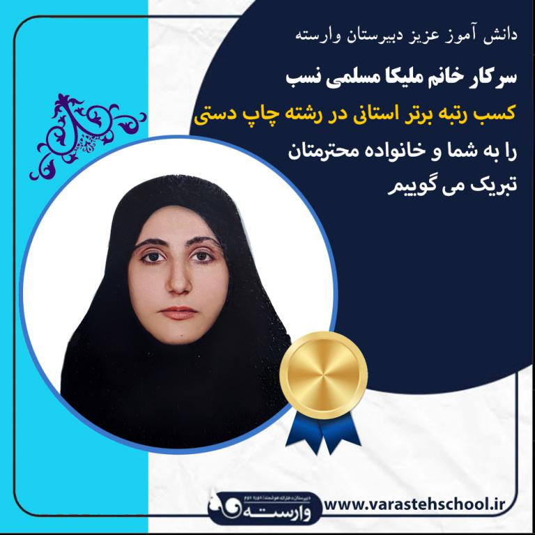 ملیکا مسلمی نسب: کسب رتبه برتر استانی در رشته چاپ دستی