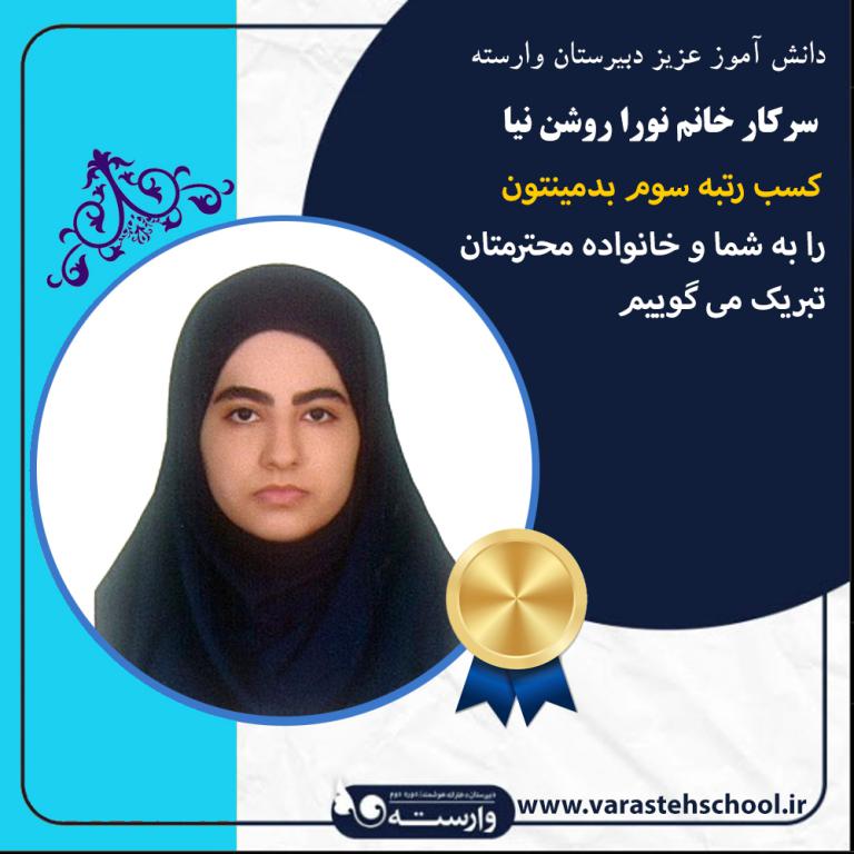 نورا روشن نیا: کسب رتبه سوم بدمینتون